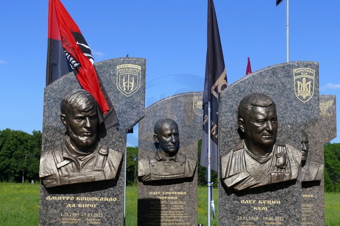 CHERKASY REGION, UKRAINE - MAY 9, 2024 - The Alley of Memory commemorates the military personnel of the 93rd Kholodnyi Yar Separate Mechanized Brigade who perished while defending Ukraine in 2014-2023, Cherkasy region, central Ukraine., Credit:Yulii Zozulia / Avalon