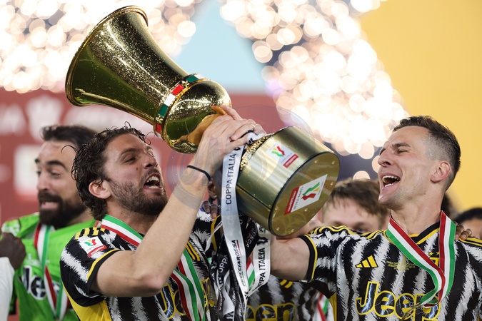 Manuel Locatelli, Arkadiusz Milik during Coppa Italia 2023/24 final match between Atalanta Bergamo and Juventus F.C at Olympic Stadium in Rome, Italy 15 May 2024, Credit:Federico Proietti Sync / Avalon