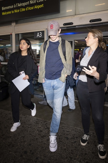 Mike Faist przybywa na lotnisko w Nicei podczas 77. Międzynarodowego Festiwalu Filmowego w Cannes