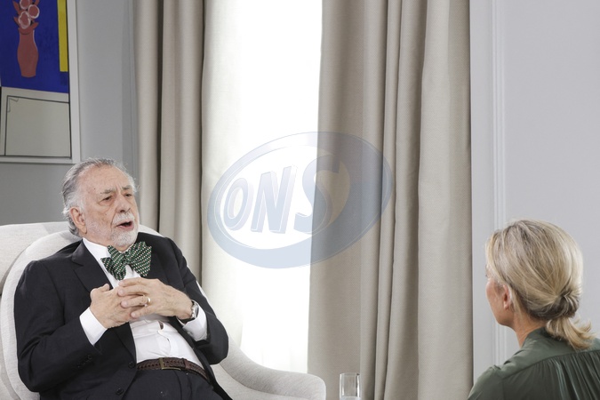 Exclusif - Francis Ford Coppola et Anne-Sophie Lapix au Carlton Cannes, a Regent Hotel pour l’enregistrement du JT de 20h de France 2 en marge du 77ème Festival International du Film de Cannes