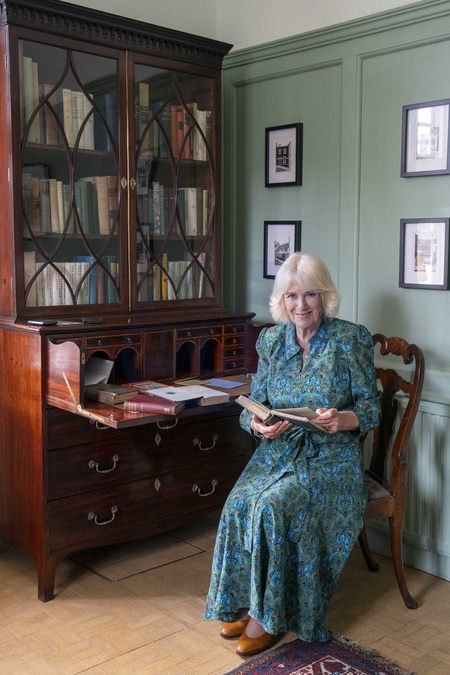 Her Majesty The Queen joined a Garden Party with organisations in celebration of Rye's literary history. Lamb House, West St, Rye TN31 7ES... Her Majesty then joined guests for a Garden Party in.celebration of Rye's literacy history. During the Garden Party, Gyles Brandreth, President of the Friends of Tilling. Actor Timothy West and Oscar winner Hayley Mills gave readings from the celebration of Rye's literary history..After departing Lamb House, Her Majesty strolled down Rye's Mermaid Street . ..R The Queen looking at a first edition of a Henry James book inn the library at Lamb House, Credit:Arthur Edwards / Avalon