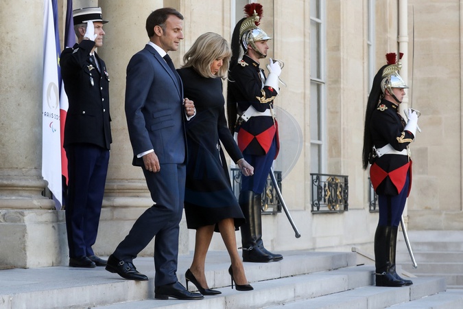 Emmanuel Macron i jego żona Brigitte przyjmują Daniela Noboę, Prezydenta Republiki Ekwadoru i jego żonę