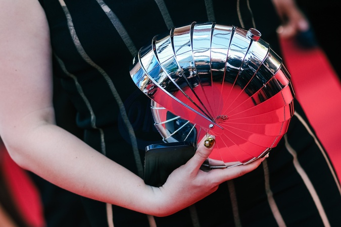 Guest photographed on the Red Carpet for the World Premiere of Francis Ford Coppola's Megalopolis during the 77th Festival de Cannes on Thursday 16 May 2024 at Le Palais des festivals, Cannes. Fashion Detail - Metalic Handbag., Credit:Julie Edwards / Avalon