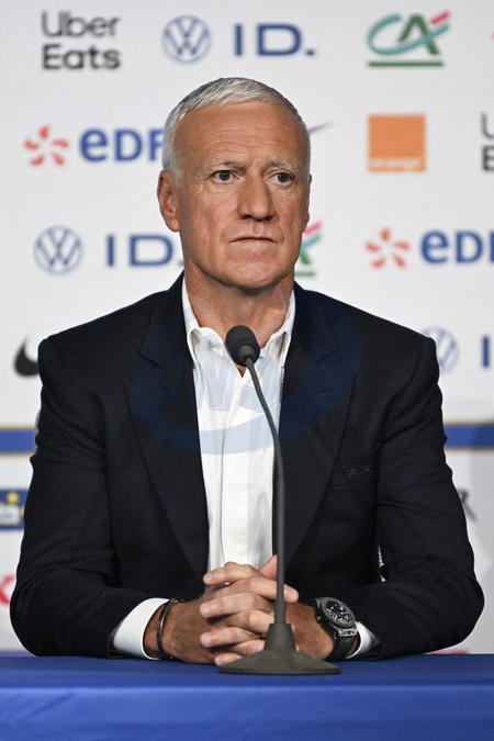 Conférence de presse de Didier Deschamps pour l'annonce de la liste des Bleus sélectionnés à l'Euro 2024. Press conference by Didier Deschamps after announcing his list to compete in Euro 2024, which begins on June 14 in Germany on the TF1 set in Boulogne