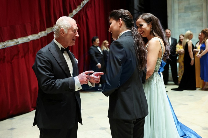 Britain's King Charles meets with the cast of a special Gala performance, on the day of an event celebrating Antonio Pappano's 22 years as Music Director at the Royal Opera House, in London, Britain, May 16, 2024., Credit:Isabel Infantes / Avalon