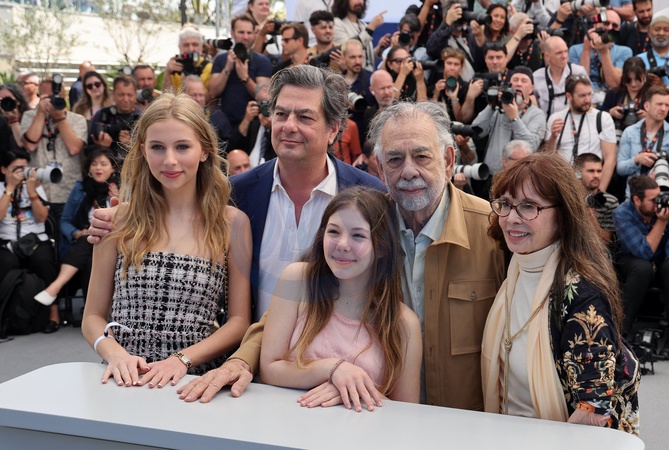 Romy Croquet, Roman Coppola, Cosima Mars, Francis Ford Coppola et Talia Shire au photocall du film "Megalopolis" lors du 77ème Festival International du Film de Cannes au Palais des Festivals à Cannes, France, le 17 mai 2024. © Jacovides-Moreau/Bestimage "Megalopolis" Photocall at the 77th annual Cannes Film Festival at Palais des Festivals on May 17, 2024 in Cannes, France.