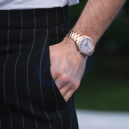Barry Keoghan poses at the Photocall for Bird during the 77th Festival de Cannes on Friday 17 May 2024 at Le Palais des festivals, Cannes. Fashion Detail - Omega Aqua Terra Sedna Gold Watch., Credit:Julie Edwards / Avalon