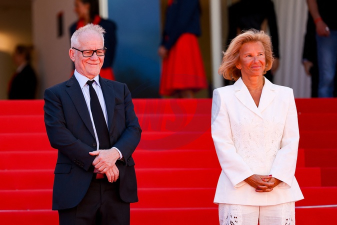 Thierry Frémaux, délégué général du festival de Cannes, Iris Knobloch, présidente du festival de Cannes - Montée des marches du film "Trois kilomètres jusqu'à la fin du monde" ("Three Kilometers to the End of the World") lors du 77ème Festival International du Film de Cannes, le 17 mai 2024. © Jacovides/Moreau/Bestimage Red carpet of the movie « Three Kilometers to the End of the World » during the 77th Cannes International Film Festival at the Palais des Festivals in Cannes, France. On may 17th 2024