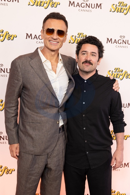 Julian McMahon, Lorcan Finnegan - Photocall de la soirée du film "The Surfer" sur la plage Magnum lors du 77ème Festival International du Film de Cannes, France, le 17 mai 2024. © Jeremy Melloul / Magnum Cannes via Bestimage Magnum Beach photocall "The Surfer" party during the 77th Cannes International Film Festival on May 17, 2024
