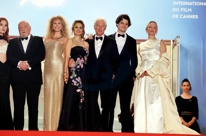 Taylor Jeanne, Paul Schrader, Penelope Mitchell, Alejandra Silva et son mari Richard Gere, son fils Homer James Jigme Gere et Uma Thurman - Montée des marches du film « Oh, Canada » lors du 77ème Festival International du Film de Cannes, au Palais des Festivals à Cannes. Le 17 mai 2024 © Jacovides-Moreau / Bestimage Red carpet of the movie « Oh, Canada» during the 77th Cannes International Film Festival at the Palais des Festivals in Cannes, France. On may 17th 2024