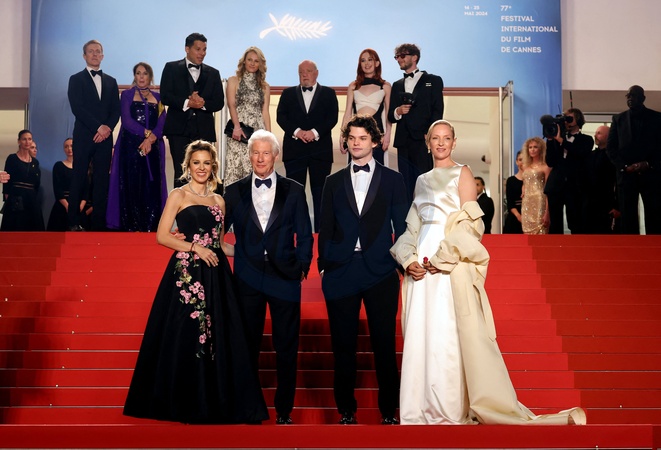 Alejandra Silva et son mari Richard Gere, son fils Homer James Jigme Gere et Uma Thurman - Montée des marches du film « Oh, Canada » lors du 77ème Festival International du Film de Cannes, au Palais des Festivals à Cannes. Le 17 mai 2024 © Jacovides-Moreau / Bestimage Red carpet of the movie « Oh, Canada» during the 77th Cannes International Film Festival at the Palais des Festivals in Cannes, France. On may 17th 2024