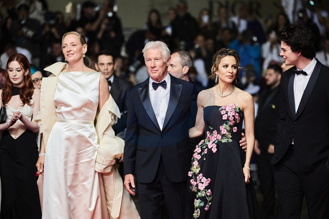 Uma Thurman, Richard Gere, sa femme Alejandra Silva, son fils Homer James Jigme Gere - Montée des marches du film « Oh, Canada » lors du 77ème Festival International du Film de Cannes, au Palais des Festivals à Cannes. Le 17 mai 2024 © Jacovides-Moreau / Bestimage Red carpet of the movie « Oh, Canada» during the 77th Cannes International Film Festival at the Palais des Festivals in Cannes, France. On may 17th 2024