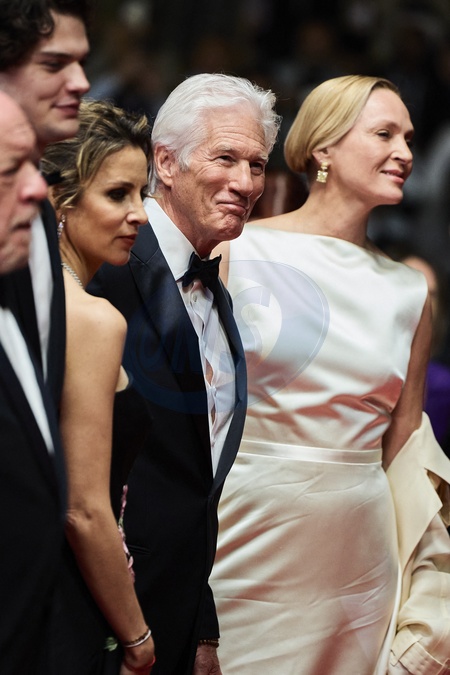 Homer James Jigme Gere, Alejandra Silva, Richard Gere, Uma Thurman - Montée des marches du film « Oh, Canada » lors du 77ème Festival International du Film de Cannes, au Palais des Festivals à Cannes. Le 17 mai 2024 © Jacovides-Moreau / Bestimage Red carpet of the movie « Oh, Canada» during the 77th Cannes International Film Festival at the Palais des Festivals in Cannes, France. On may 17th 2024