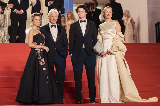 Alejandra Silva et son mari Richard Gere, son fils Homer James Jigme Gere et Uma Thurman - Montée des marches du film « Oh, Canada » lors du 77ème Festival International du Film de Cannes, au Palais des Festivals à Cannes. Le 17 mai 2024 © Jacovides-Moreau / Bestimage Red carpet of the movie « Oh, Canada» during the 77th Cannes International Film Festival at the Palais des Festivals in Cannes, France. On may 17th 2024