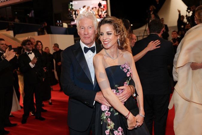 Richard Gere et sa femme Alejandra Silva - Descente des marches du film "Oh Canada" lors du 77ème Festival International du Film de Cannes, au Palais des Festivals à Cannes. Le 17 mai 2024 © Jacovides-Moreau / Bestimage People leaving the red carpet of the movie "Oh Canada" during the 77th Cannes International Film Festival at the Palais des Festivals in Cannes, France. On may 17th 2024