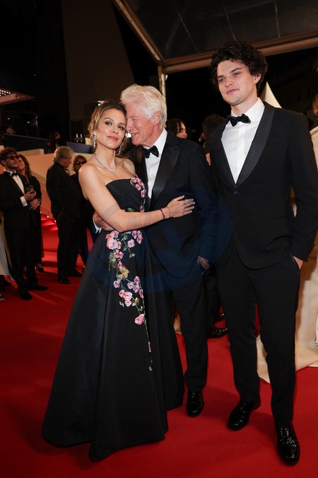 Alejandra Silva, son mari Richard Gere et son fils Homer James Jigme Gere - Descente des marches du film "Oh Canada" lors du 77ème Festival International du Film de Cannes, au Palais des Festivals à Cannes. Le 17 mai 2024 © Jacovides-Moreau / Bestimage People leaving the red carpet of the movie "Oh Canada" during the 77th Cannes International Film Festival at the Palais des Festivals in Cannes, France. On may 17th 2024