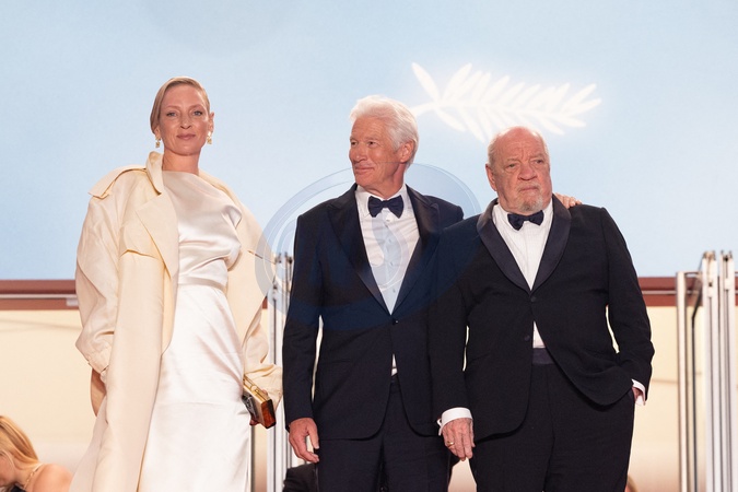 Uma Thurman, Richard Gere, Paul Schrader - Descente des marches du film "Oh Canada" lors du 77ème Festival International du Film de Cannes, au Palais des Festivals à Cannes. Le 17 mai 2024 © Jacovides-Moreau / Bestimage People leaving the red carpet of the movie "Oh Canada" during the 77th Cannes International Film Festival at the Palais des Festivals in Cannes, France. On may 17th 2024