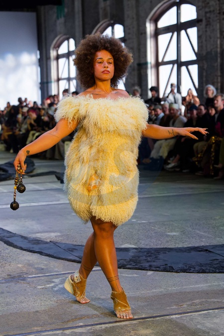 A model walks the runway during the Wackie Ju show during Australian Fashion Week Presented By Pandora 2024 at Carriageworks on May 17, 2024 in Sydney, Australia, Credit:IOIO IMAGES / Avalon