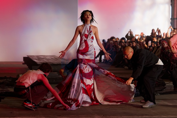 A model is transformed on the runway during the Wackie Ju show during Australian Fashion Week Presented By Pandora 2024 at Carriageworks on May 17, 2024 in Sydney, Australia, Credit:IOIO IMAGES / Avalon