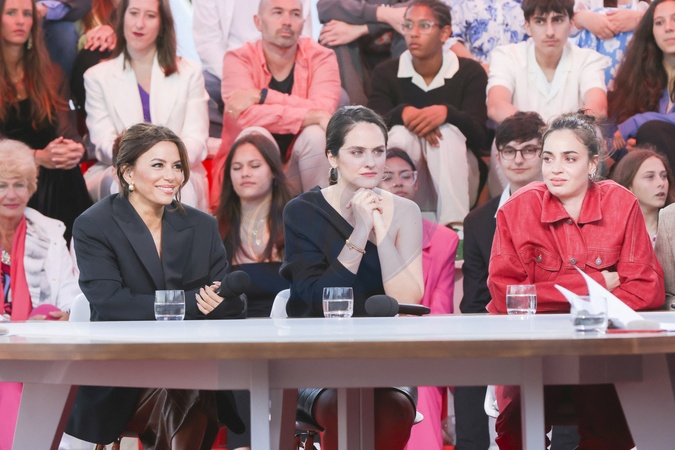 Exclusif - Eva Longoria, Noémie Merlant sur le plateau de 'émission "C à vous" lors du 77ème Festival International du Film de Cannes le 17 mai 2024. © Jack Tribeca / Bestimage No Web - Belgique et Suisse Exclusive - For Germany call for price - Set of the show "C à vous” during the 77th Cannes International Film Festival on May 17, 2024.