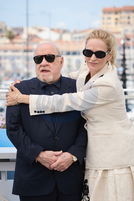 Paul Schrader et Uma Thurman - Photocall du film "Oh, Canada" lors du 77ème Festival International du Film de Cannes le 18 mai 2024. © Jacovides / Moreau / Bestimage Photocall for the film "Oh,Canada" at the 77th Cannes International Film Festival on 18 May 2024
