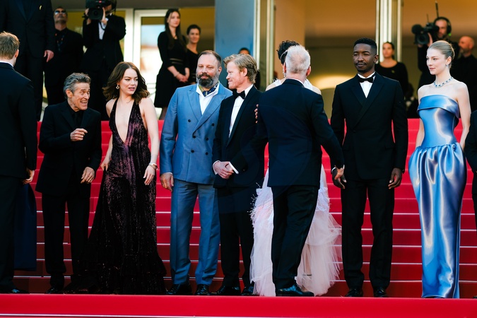 Joe Alwyn, Hong Chau, Willem Dafoe, Emma Stone, Yorgos Lanthimos, Jesse Plemons, Margaret Qualley and Hunter Schafer photographed on the Red Carpet for Kinds of Kindness during the 77th Festival de Cannes on Friday 17 May 2024 at Le Palais des festivals, Cannes. ., Credit:Julie Edwards / Avalon