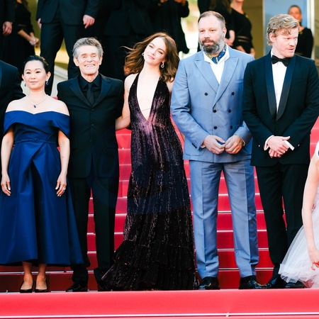 Hong Chau, Willem Dafoe, Emma Stone, Yorgos Lanthimos, Jesse Plemons photographed on the Red Carpet for Kinds of Kindness during the 77th Festival de Cannes on Friday 17 May 2024 at Le Palais des festivals, Cannes. ., Credit:Julie Edwards / Avalon
