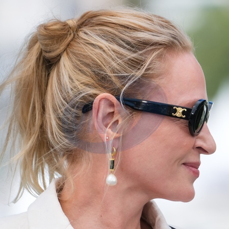 Uma Thurman poses at the Photocall for Oh Canada during the 77th Festival de Cannes on Saturday 18 May 2024 at Le Palais des festivals, Cannes. Fashion Detail - Sunglasses., Credit:Julie Edwards / Avalon