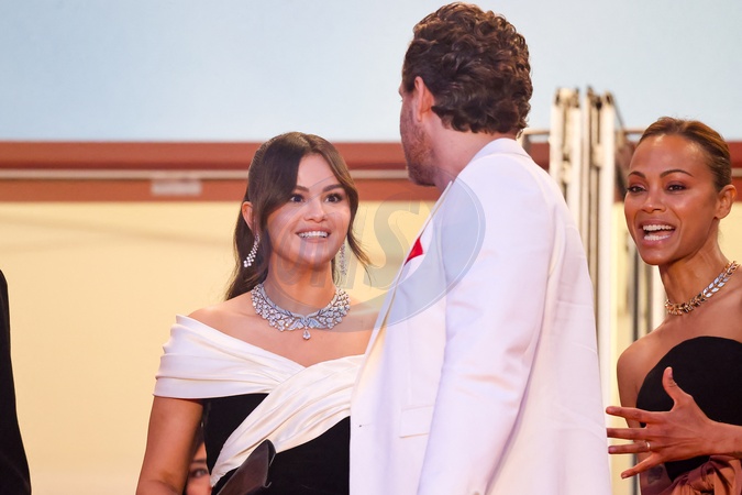 Selena Gomez, Édgar Ramírez, Zoe Saldana - Descente des marches du film « Emilia Perez » lors du 77ème Festival International du Film de Cannes, au Palais des Festivals à Cannes. Le 18 mai 2024 © Jacovides-Moreau / Bestimage People leaving the red carpet of the movie « Emilia Perez » during the 77th Cannes International Film Festival at the Palais des Festivals in Cannes, France. On may 18th 2024