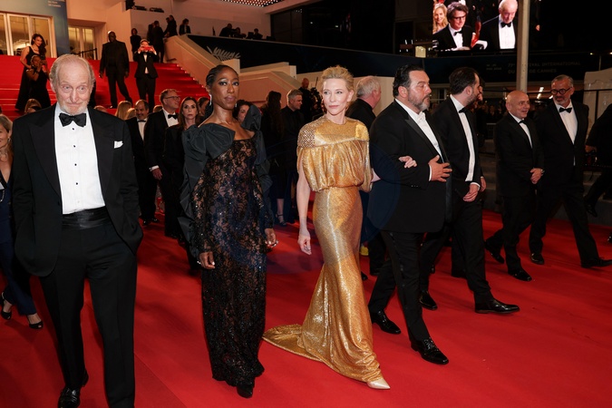 Charles Dance, Nikki Amuka-Bird, Cate Blanchett, Denis Ménochet - Descente des marches du film « Rumours » lors du 77ème Festival International du Film de Cannes, au Palais des Festivals à Cannes. Le 18 mai 2024 © Jacovides-Moreau / Bestimage People leaving the red carpet of the movie « Rumours » during the 77th Cannes International Film Festival at the Palais des Festivals in Cannes, France. On may 18th 2024