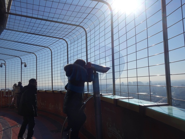 Tourists use the telescopes on the sightseeing platform of CCTV Tower in Beijing, China Monday, Jan. 15, 2024., Credit:FAN SHUMEI / Avalon