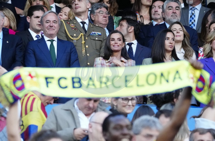 La reine Letizia d'Espagne assiste à la Coupe de la Reine 2024 (football féminin) entre le FC Barcelone et la Real Sociedad à Saragosse le 18 mai 2024. © Lalo Yasky / Bestimage Queen Letizia attends the Copa de la Reina (Queen´s Cup) 2024 women football final between FC Barcelona and Real Sociedad at the Estadio de la Romareda. Zaragoza - May 18, 2024