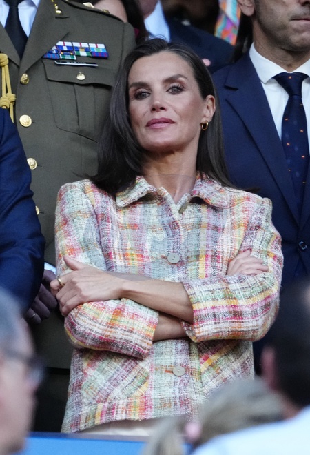 La reine Letizia d'Espagne assiste à la Coupe de la Reine 2024 (football féminin) entre le FC Barcelone et la Real Sociedad à Saragosse