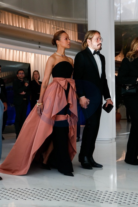 Zoe Saldana et son mari Marco Perego - Sorties de l'hôtel JW Marriott à Cannes, France, le 18 mai 2024. © Christophe Clovis / Bestimage Celebrities leaving hotel JW Marriott suring the 77th Cannes International Film Festival on May 18, 2024