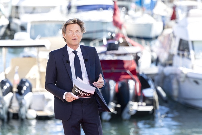 Exclusif - Laurent Delahousse lors de l'enregistrement du "20h30 le dimanche" (19/05/24) avec Laurent Delahousse lors du 77ème Festival International du Film de Cannes, France, le 17 mai 2024. © Olivier Borde/Bestimage Exclusive - For Germany Call For Price - Recording of "8:30 p.m. on Sunday” with Laurent Delahousse during the 77th Cannes International Film Festival, France, May 17, 2024.