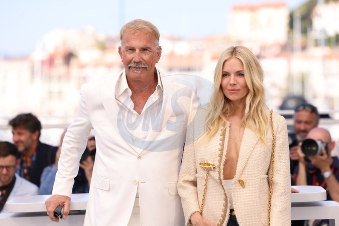 Kevin Costner, Sienna Miller - Photocall du film "Horizon : An American Saga" lors du 77ème Festival International du Film de Cannes le 19 mai 2024. © Jacovides / Moreau / Bestimage Photocall for the film "Horizon : An American Saga" at the 77th Cannes International Film Festival on 19 May 2024