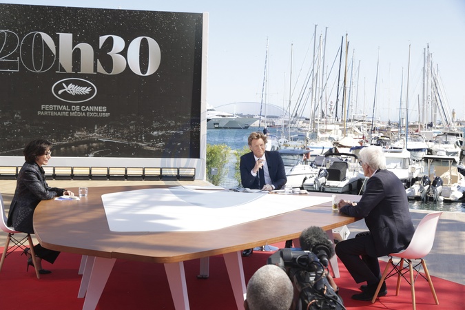 Exclusif - Rachida Dati, ministre de la Culture, Laurent Delahousse et Richard Gere lors de l'enregistrement du "20h30 le dimanche" (19/05/24) avec Laurent Delahousse lors du 77ème Festival International du Film de Cannes, France, le 17 mai 2024. © Jack Tribeca/Bestimage Exclusive - For Germany Call For Price - Recording of "8:30 p.m. on Sunday” with Laurent Delahousse during the 77th Cannes International Film Festival, France, May 17, 2024.