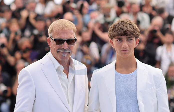 Kevin Costner et son fils Hayes Costner - Photocall du film "Horizon : An American Saga" lors du 77ème Festival International du Film de Cannes le 19 mai 2024. © Jacovides / Moreau / Bestimage Photocall for the film "Horizon : An American Saga" at the 77th Cannes International Film Festival on 19 May 2024