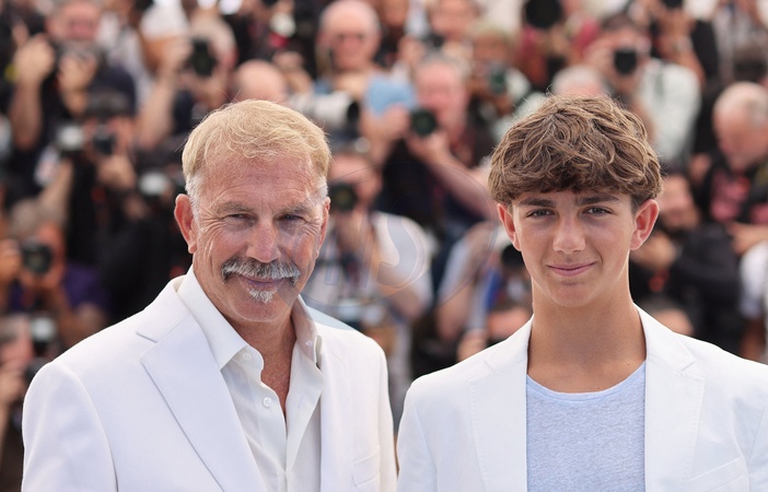 Kevin Costner et son fils Hayes Costner - Photocall du film "Horizon : An American Saga" lors du 77ème Festival International du Film de Cannes le 19 mai 2024. © Jacovides / Moreau / Bestimage Photocall for the film "Horizon : An American Saga" at the 77th Cannes International Film Festival on 19 May 2024