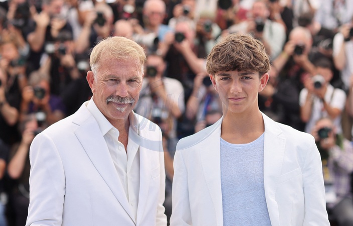 Kevin Costner et son fils Hayes Costner - Photocall du film "Horizon : An American Saga" lors du 77ème Festival International du Film de Cannes le 19 mai 2024. © Jacovides / Moreau / Bestimage Photocall for the film "Horizon : An American Saga" at the 77th Cannes International Film Festival on 19 May 2024