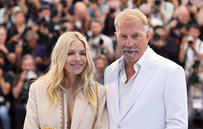 Kevin Costner et Sienna Miller - Photocall du film "Horizon : An American Saga" lors du 77ème Festival International du Film de Cannes le 19 mai 2024. © Jacovides / Moreau / Bestimage Photocall for the film "Horizon : An American Saga" at the 77th Cannes International Film Festival on 19 May 2024