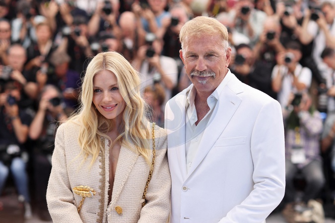 Kevin Costner et Sienna Miller - Photocall du film "Horizon : An American Saga" lors du 77ème Festival International du Film de Cannes le 19 mai 2024. © Jacovides / Moreau / Bestimage Photocall for the film "Horizon : An American Saga" at the 77th Cannes International Film Festival on 19 May 2024