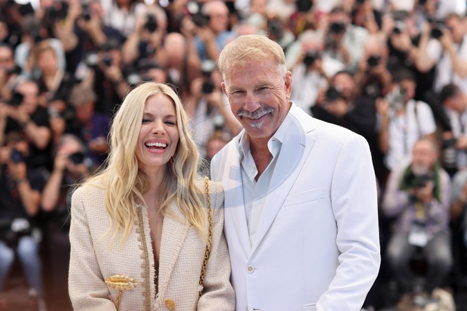 Kevin Costner et Sienna Miller - Photocall du film "Horizon : An American Saga" lors du 77ème Festival International du Film de Cannes le 19 mai 2024. © Jacovides / Moreau / Bestimage Photocall for the film "Horizon : An American Saga" at the 77th Cannes International Film Festival on 19 May 2024