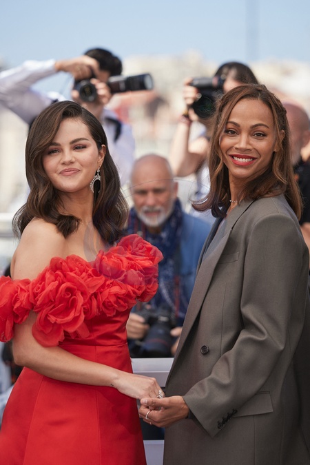 Selena Gomez et Zoe Saldana - Photocall du film "Emilia Perez" lors du 77ème Festival International du Film de Cannes le 19 mai 2024. © Jacovides / Moreau / Bestimage Photocall for the film "Emilia Perez" at the 77th Cannes International Film Festival on 19 May 2024