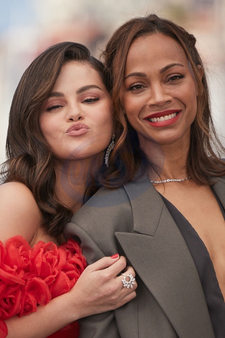 Selena Gomez et Zoe Saldana - Photocall du film "Emilia Perez" lors du 77ème Festival International du Film de Cannes le 19 mai 2024. © Jacovides / Moreau / Bestimage Photocall for the film "Emilia Perez" at the 77th Cannes International Film Festival on 19 May 2024