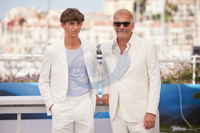 Kevin Costner et son fils Hayes Costner - Photocall du film "Horizon : An American Saga" lors du 77ème Festival International du Film de Cannes le 19 mai 2024. © Jacovides / Moreau / Bestimage Photocall for the film "Horizon : An American Saga" at the 77th Cannes International Film Festival on 19 May 2024