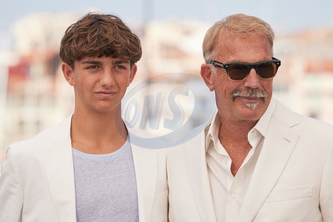Kevin Costner et son fils Hayes Costner - Photocall du film "Horizon : An American Saga" lors du 77ème Festival International du Film de Cannes le 19 mai 2024. © Jacovides / Moreau / Bestimage Photocall for the film "Horizon : An American Saga" at the 77th Cannes International Film Festival on 19 May 2024