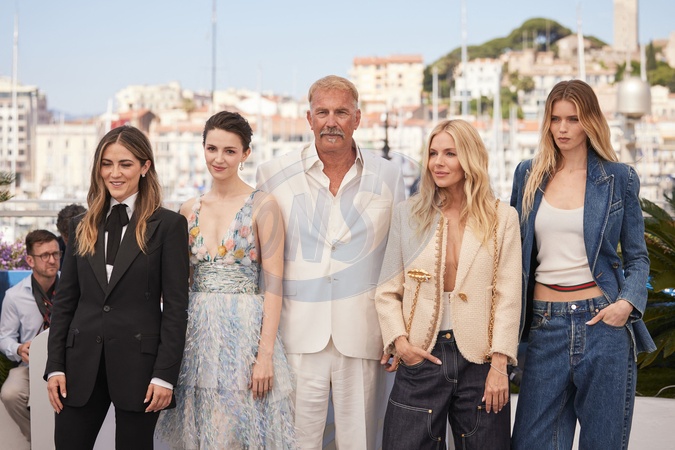 Isabelle Fuhrman, Ella Hunt, Kevin Costner, Sienna Miller, Abbey Lee Kershaw - Photocall du film "Horizon : An American Saga" lors du 77ème Festival International du Film de Cannes le 19 mai 2024. © Jacovides / Moreau / Bestimage Photocall for the film "Horizon : An American Saga" at the 77th Cannes International Film Festival on 19 May 2024