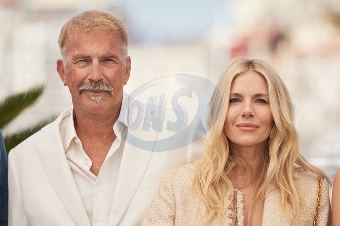 Kevin Costner, Sienna Miller - Photocall du film "Horizon : An American Saga" lors du 77ème Festival International du Film de Cannes le 19 mai 2024. © Jacovides / Moreau / Bestimage Photocall for the film "Horizon : An American Saga" at the 77th Cannes International Film Festival on 19 May 2024