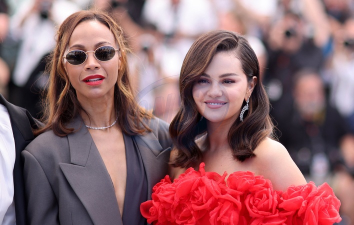 Zoe Saldana et Selena Gomez - Photocall du film "Emilia Perez" lors du 77ème Festival International du Film de Cannes le 19 mai 2024. © Jacovides / Moreau / Bestimage Photocall for the film "Emilia Perez" at the 77th Cannes International Film Festival on 19 May 2024